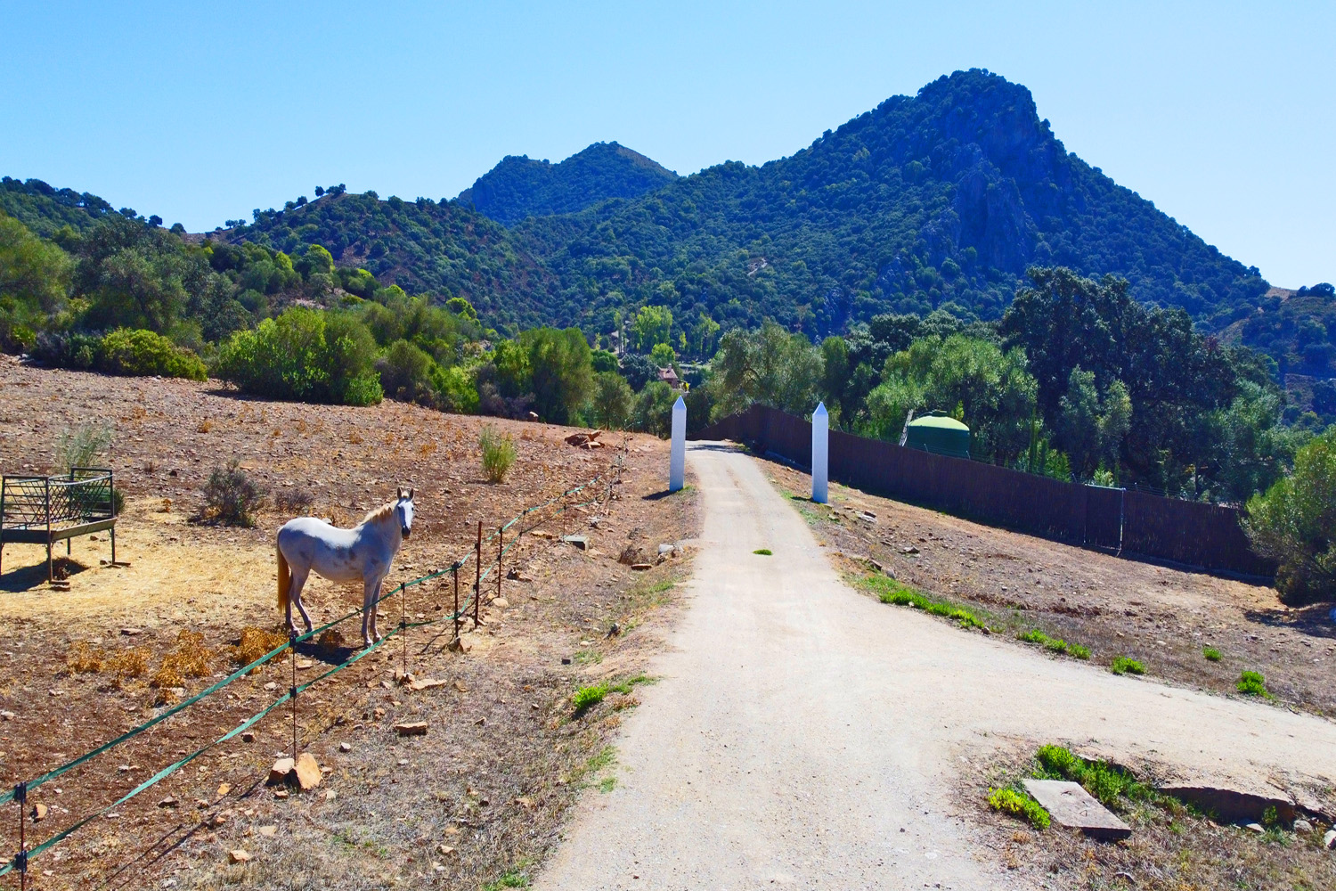 This extraordinary property is situated on a very large finca of 41 acres – fully fenced) that is very secure, private and tranquil and, from its prominent position on a private plateau, cannot be overlooked. This carefully chosen and privileged location is in the midst of nature, and would be ideal for equestrian use. The adjacent hills belong to the property and nearby mountain sides are protected land which cannot be built upon.