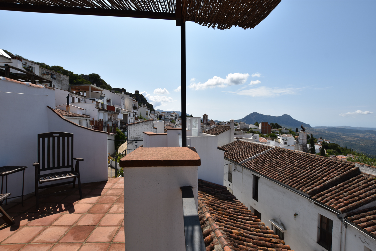A substantial metal staircase leads from the patio to the fabulous south-facing roof terrace, with spectacular panoramic views extending across the Genal river valley to the Mediterranean, Gibraltar and Rif mountains of North Africa. There are also lovely views of Crestellina mountain range to the east and El Hacho in the west - backdrop to some stunning sunsets!