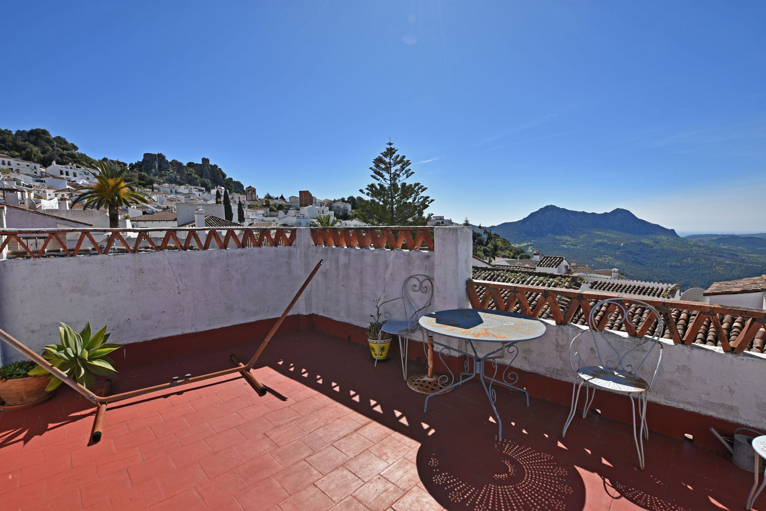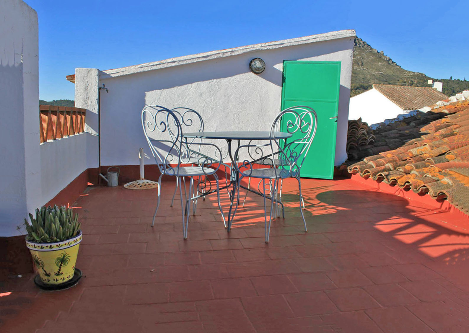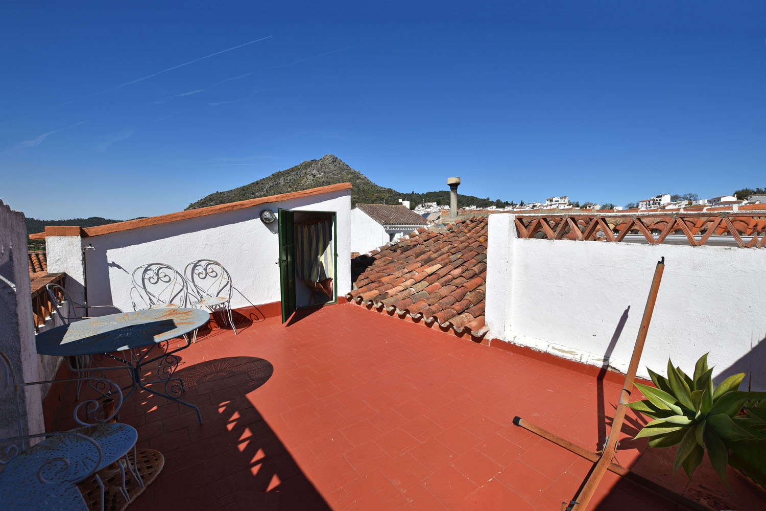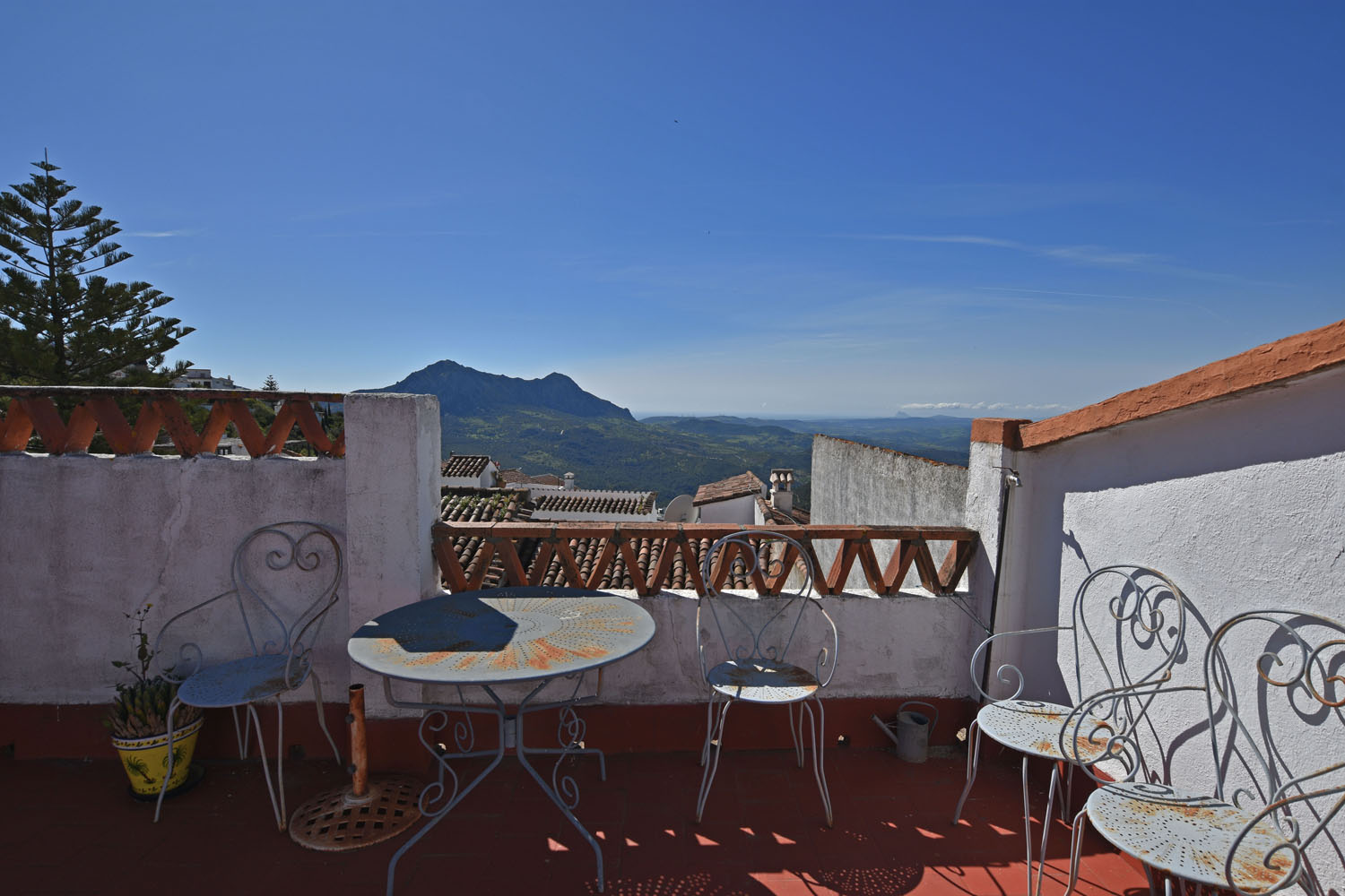 Although the house is rustic and in need of some renovation work, it is comfortable & cosy with a delightful secluded patio. From its sunny rooftop terrace there are wonderful panoramic views encompassing El Hacho mountain, the Castle of Eagles, and across the River Genal valley to the Mediterranean ~ on a clear day there are views to Gibraltar & the Rif mountains of North Africa!