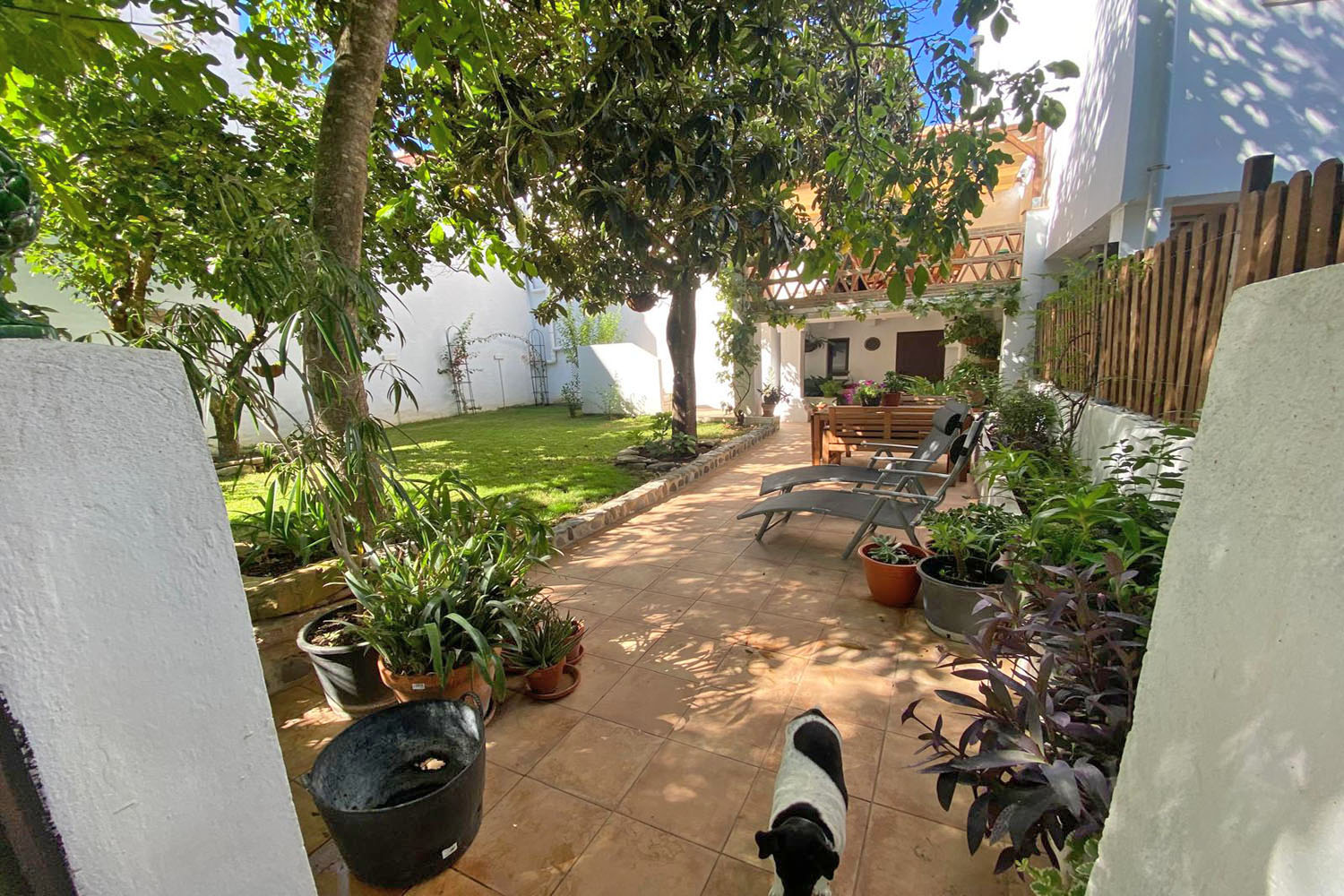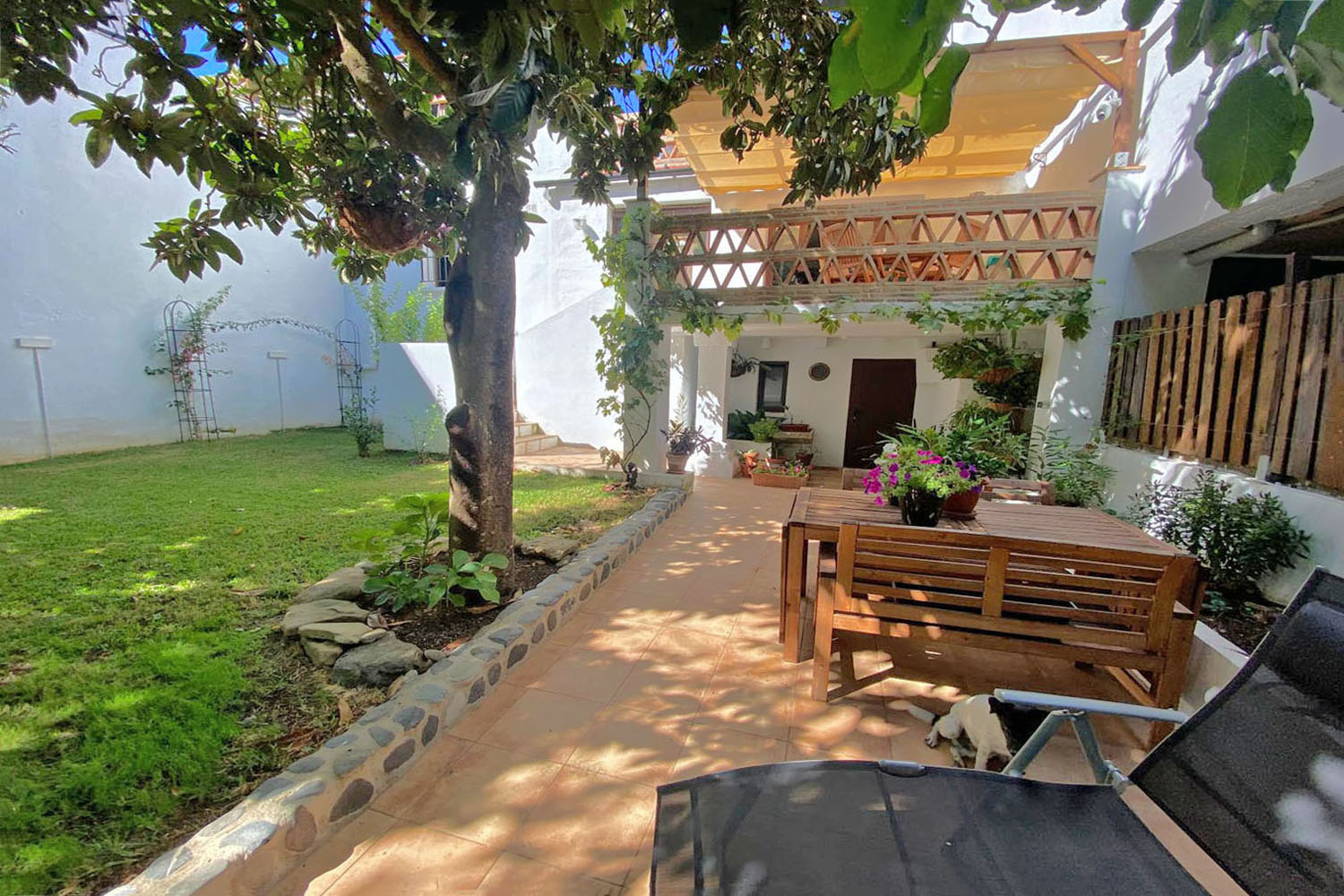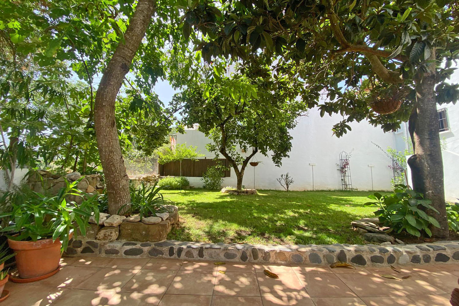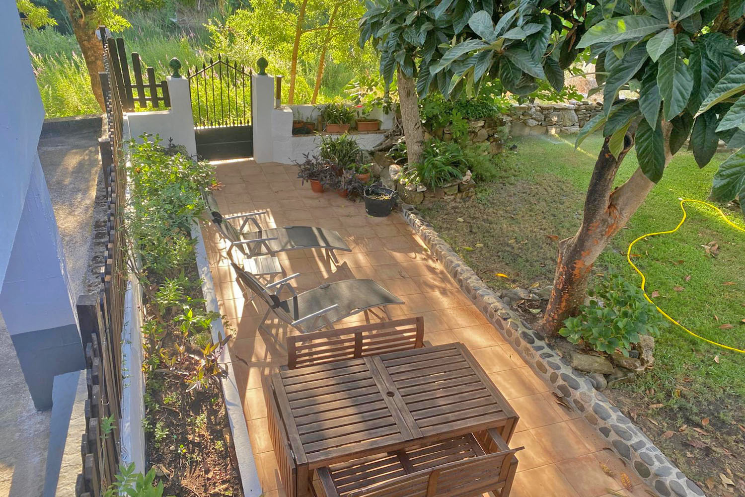 The ground floor also includes a guest bathroom and a well-appointed pantry (walk-in??). The garden has an automatic irrigation system, and below the terrace there is a substantial storage room, providing excellent space for garden furniture, tools, equipment etc.