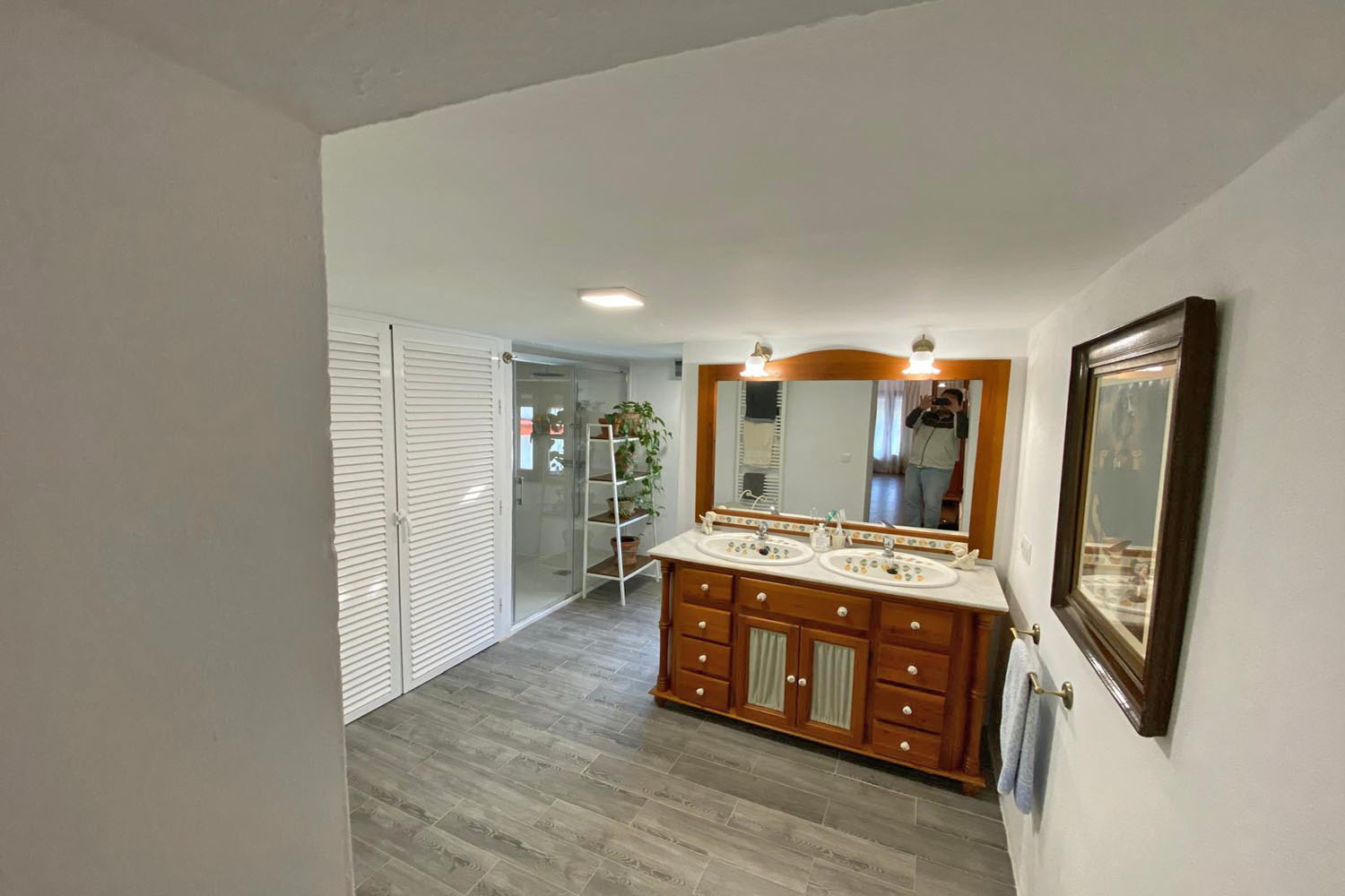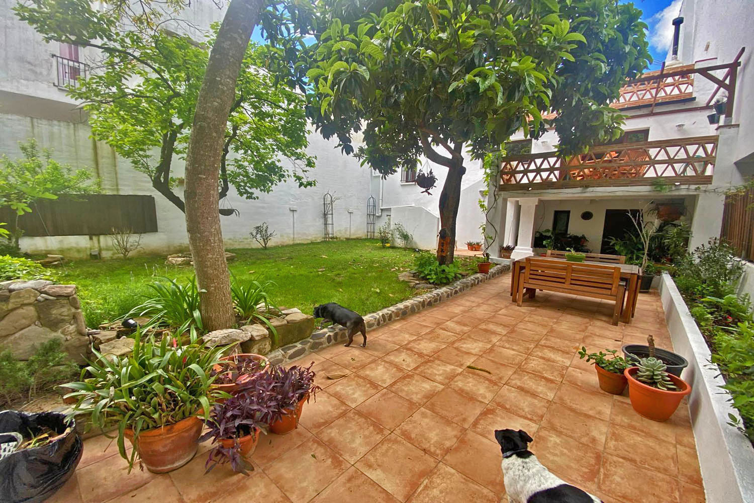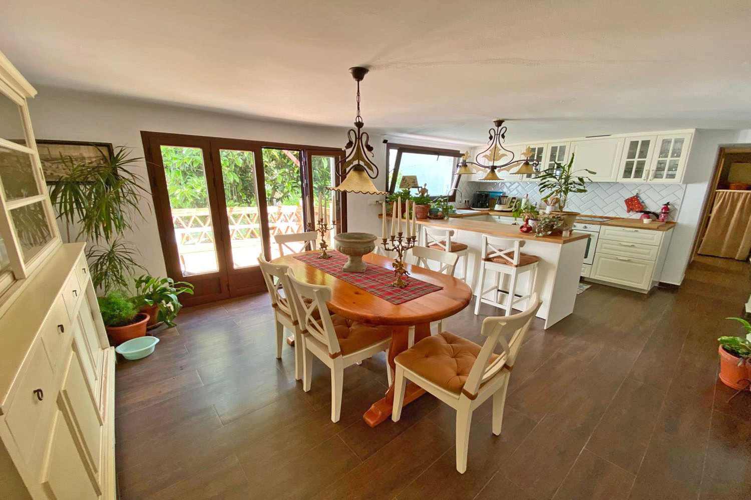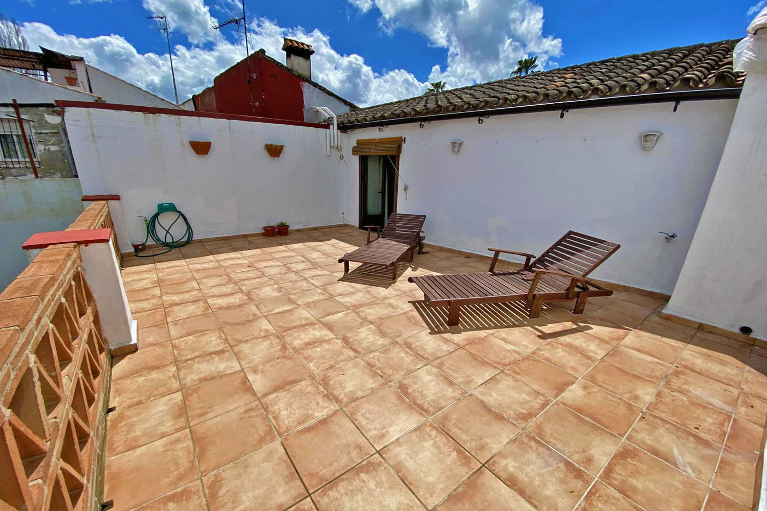 The ground floor also includes a guest bathroom and a well-appointed pantry (walk-in??). The garden has an automatic irrigation system, and below the terrace there is a substantial storage room, providing excellent space for garden furniture, tools, equipment etc.