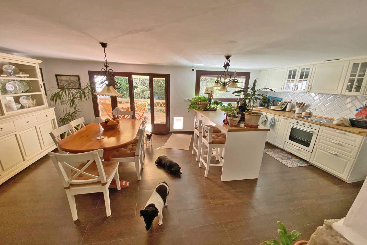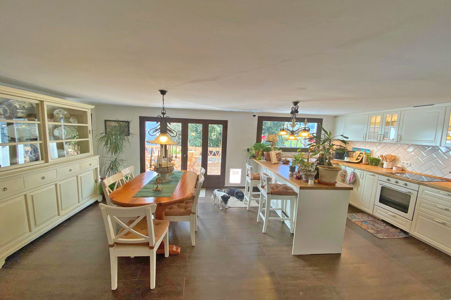 A wide and welcoming entrance hall immediately sets the tone, leading to a staircase to the upper floor. To one side, a generously proportioned living room offers a warm and inviting setting for everyday living and relaxed entertaining. To the rear, the bright newly refurbished kitchen with nice clean lines and a dining area, flow seamlessly onto a sun-drenched terrace.